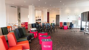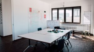 Die Baustelle ist Ermöglichungsraum für eine offene Kultur und neue Verfahren. Eine breite Auswahl an Materialien bietet den perfekten Ausgangspunkt für das Entfachen Ihrer Kreativität. Gemeinsam innovative Lösungsansätze erarbeiten, in die Welt des Design Thinkings abtauchen oder komplexe Sachverhalte reframen? Workshopmäßig ist hier alles möglich. Aber nicht nur das: In einer angenehmen Atmosphäre können Sie in der Baustelle sogar Ihren eigenen Podcast aufnehmen. Hier stehen drei Plätze zur Verfügung, die mit hochwertiger und zugleich bedienungsfreundlicher Podcasttechnik ausgestattet sind.
