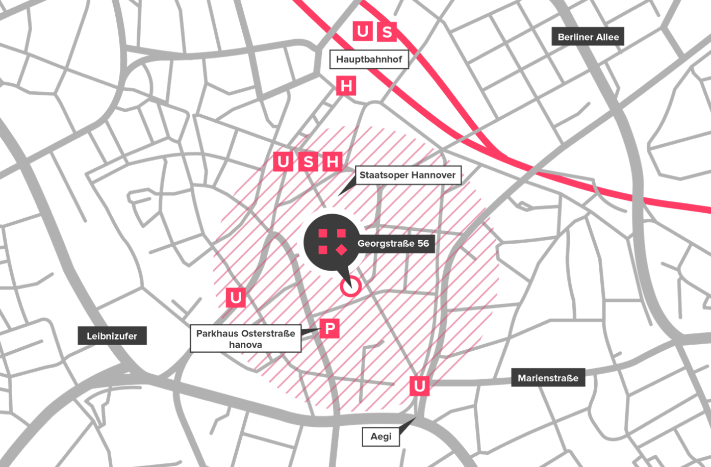 Im Herzen der Stadt Hannover ist das überwegs in der Georgstraße 56 zu Hause. Fußläufig ist es vom Hauptbahnhof aus in nur wenigen Minuten erreichbar, wodurch die Anbindung an die öffentlichen Verkehrsmittel perfekt ist. Auch die Bus- und Bahnhaltestellen „Kröpcke“ und „Aegidientorplatz“ sind direkt um die Ecke. Für die entspannte Mittagspause bieten sich zahlreiche Restaurants an, die sich ebenfalls in unmittelbarer Nähe befinden.